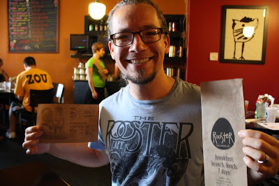 - The Mister has owned a shirt that says "Rooster Cafe, Saint Louis" for about 2 years. He bought it at Old Navy in Tulsa, and always gets comments on it. ("Rooster Cafe? Have you been there? Is it really good or something.) So we couldn't help ourselves. We looked up Rooster Cafe in St. Louis, and low and behold, there IS a Rooster restaurant. It's not at the same address as on the t-shirt (which is clearly fake), but the stylization is so similar it's eerie. We actually ended up meeting the owner and he had HIS mind blown about it.